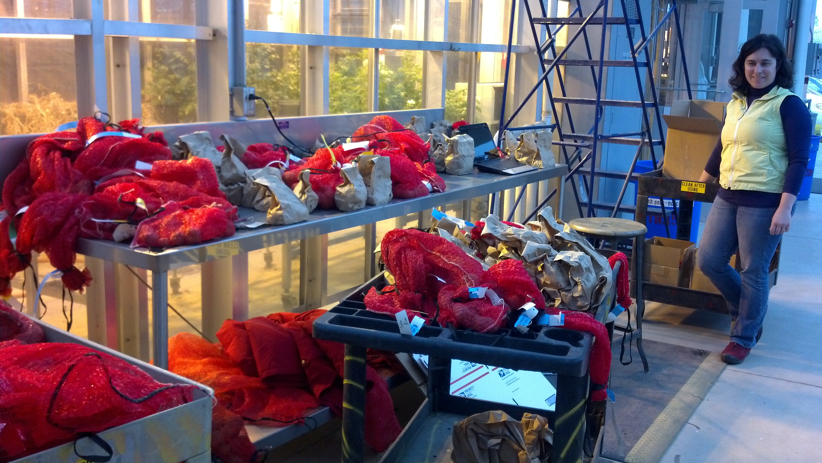 Despite the lingering snowstorms and cold weather, we are ramping up to send potato tubers out in another week or so! Amy and I took a day last week to set everything out and organize it. The greenhouse was the only place with enough space to spread everything out – it was good to be in amongst the warmth and greenery. Now we have lots of packages waiting in the cooler to ship out.